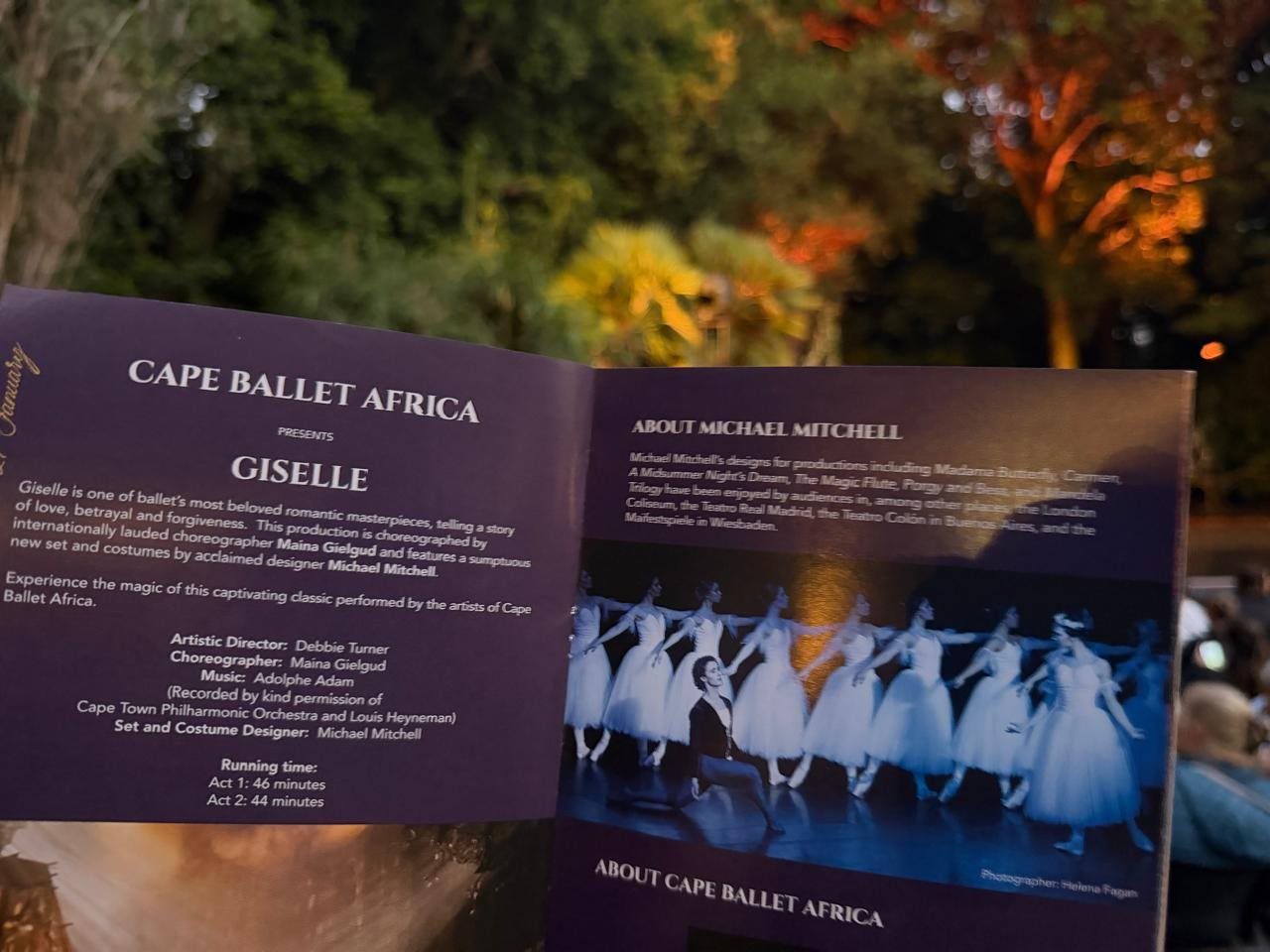 It was a treat to see Maina Gielgud’s extraordinary staging, for a 2nd time. I saw the premiere of this production in November 2025 in Cape Town and was enthralled. Seeing it under the stars, at Maynardville, enhanced this magnificent production. The setting of Giselle is pastoral and the park is a perfect space for this ballet, with the trees and bushes becoming characters in their own right.