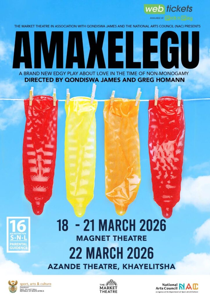 Exciting news for the theatre year is the staging in Cape Town of Amaxelegu (Messy People), the latest play by award-winning Qondiswa James, actor, writer, director and theatre-maker. The three hander, “an edgy new play about love in the time of non-monogamy”, is being presented, this month, March 2026, at two venues – Magnet Theatre in Observatory and at the Azande Theatre inKhayelitsha. This production is being presented in association with The Market Theatre. Read on for more. Info as supplied: